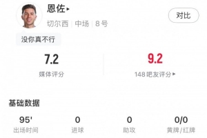 db官网官方注册-恩佐全场数据:1射正2关键传球85%传球成功率,获评7.2分